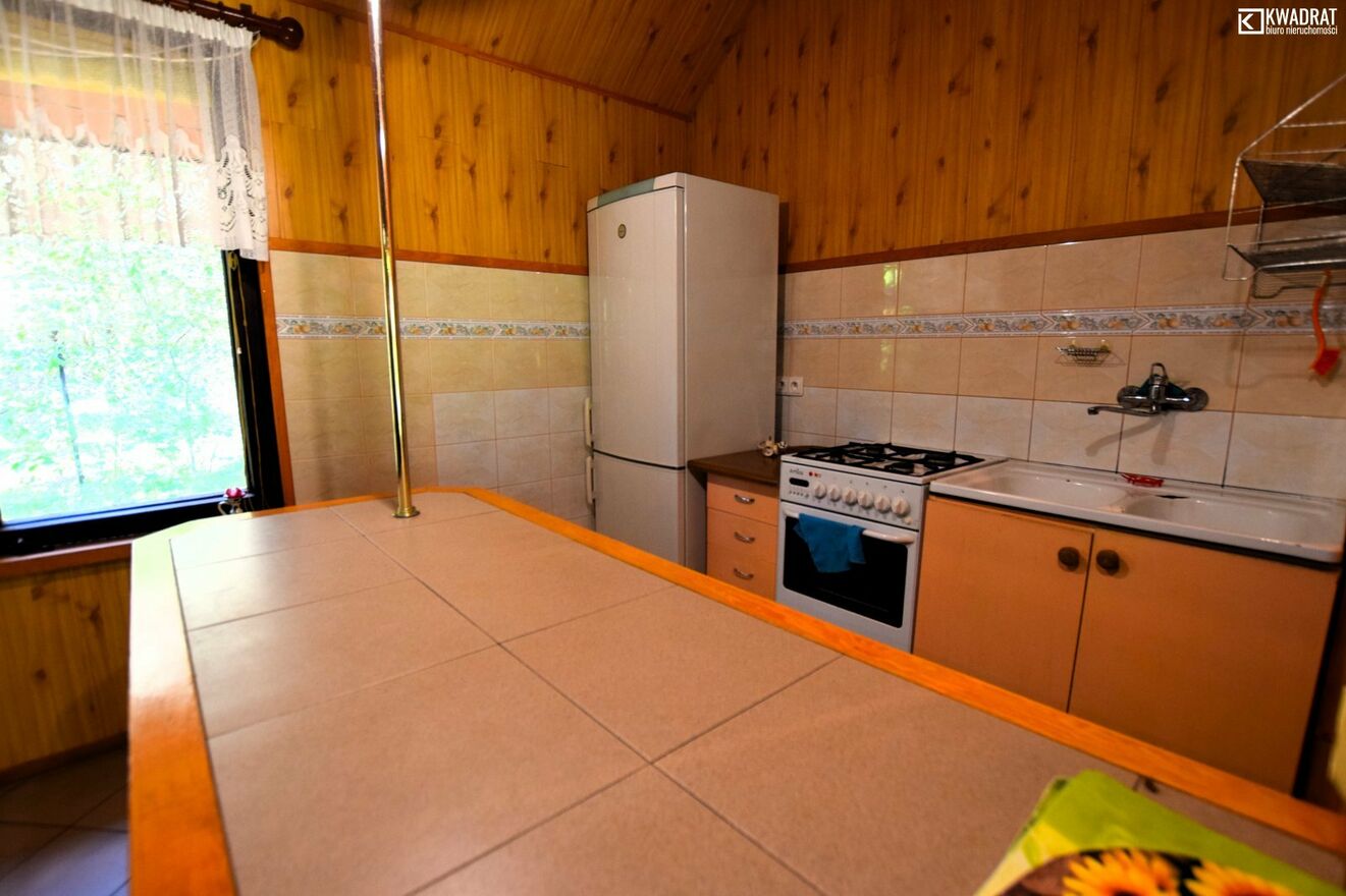 Dom usytuowany na działce o pow. 1222 m2 o kształcie trapezu. Działka jest w pełni ogrodzona i jest częściowo zalesiona,