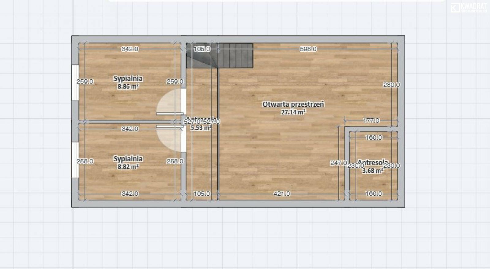 Poddasze o pow. całkowitej 27,09 m2 składa się z: